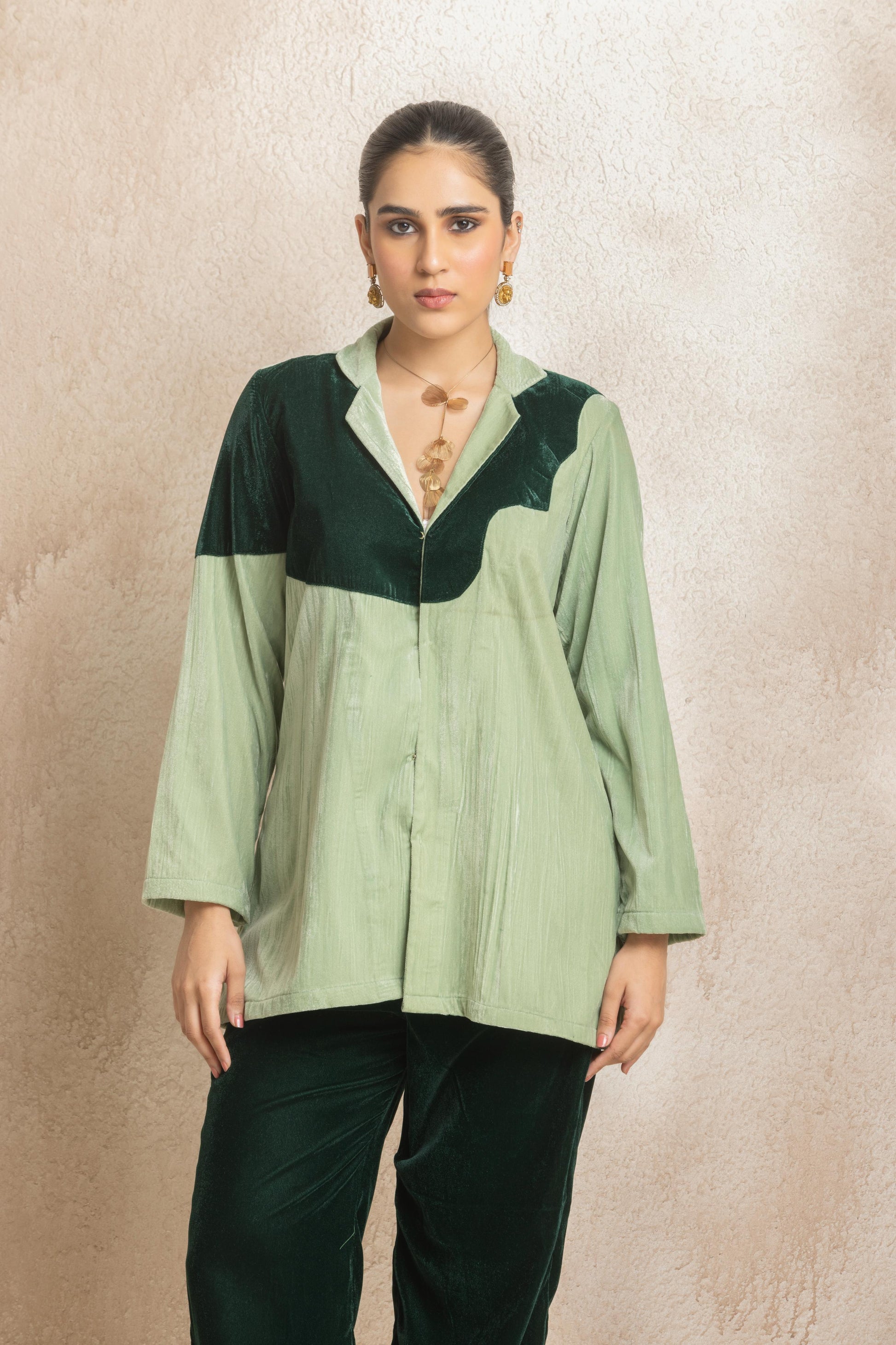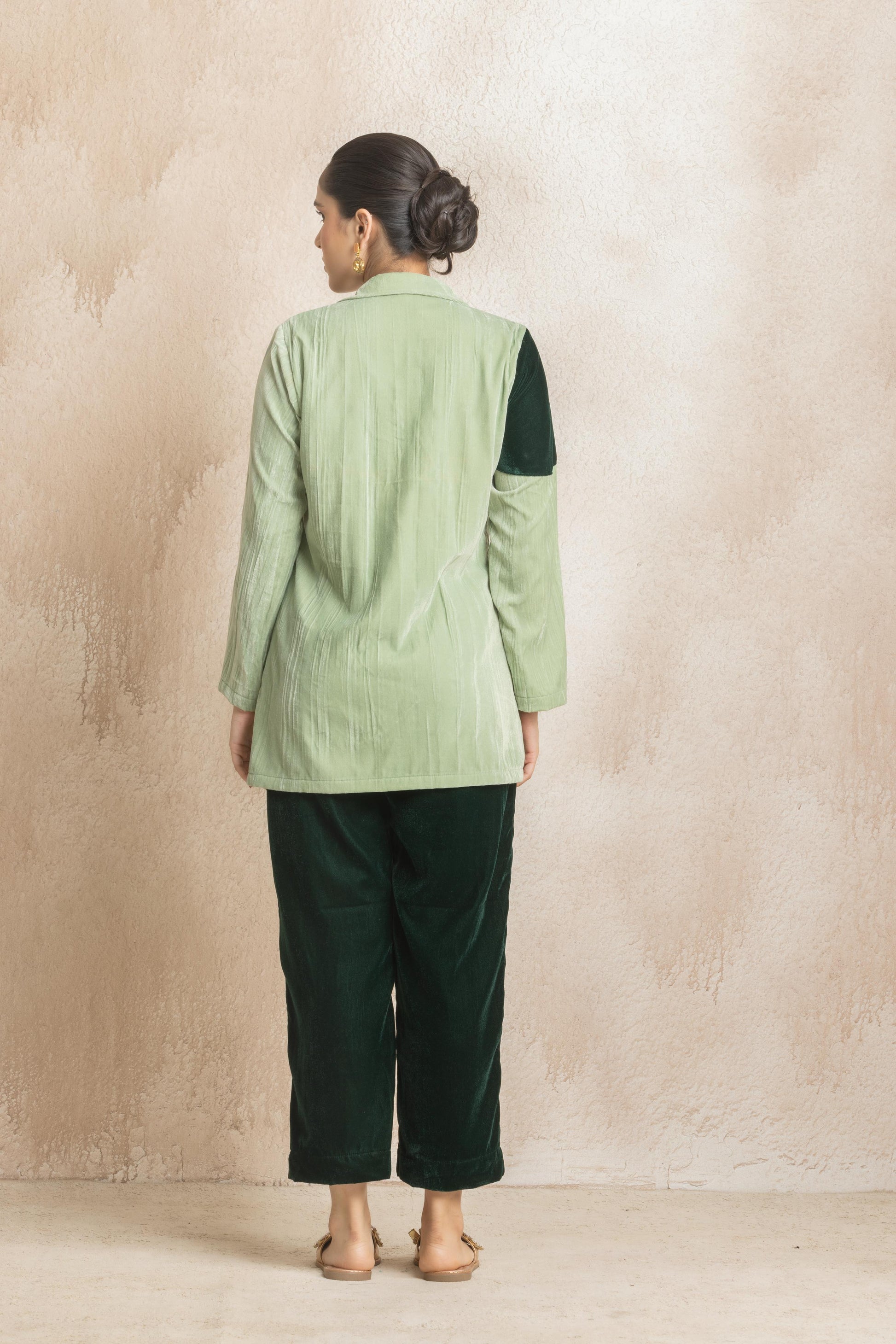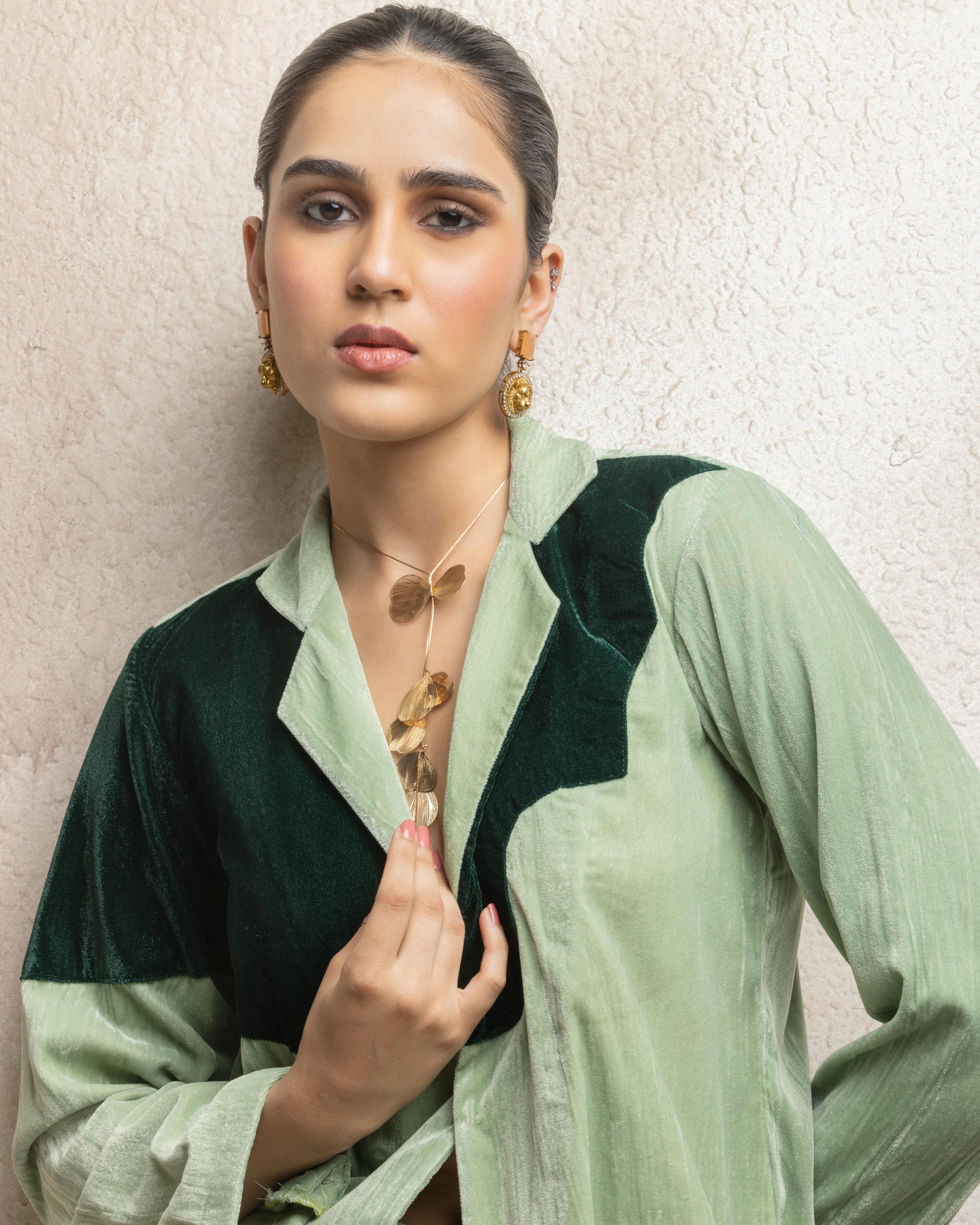 Soft, soothing, and effortlessly graceful — this pista green velvet kurta set is crafted for women who love understated luxury. The plush velvet shirt features a flattering neckline that frames the collar beautifully, while the deep green pants add richness and depth to the look. Perfectly balanced between comfort and elegance, this ensemble moves seamlessly from festive evenings to intimate gatherings.